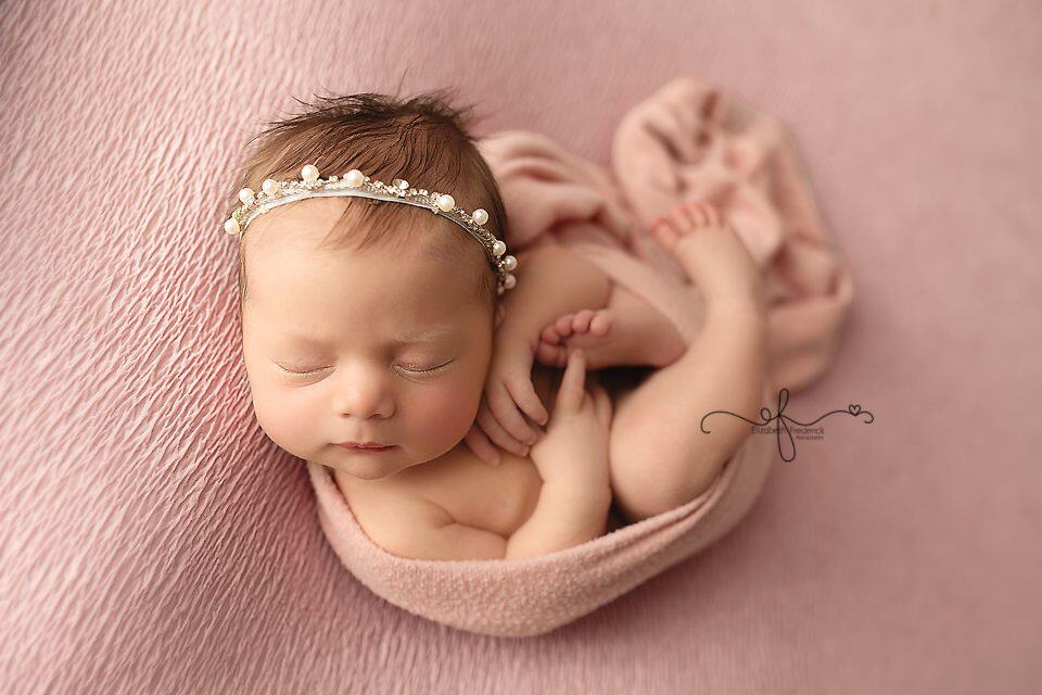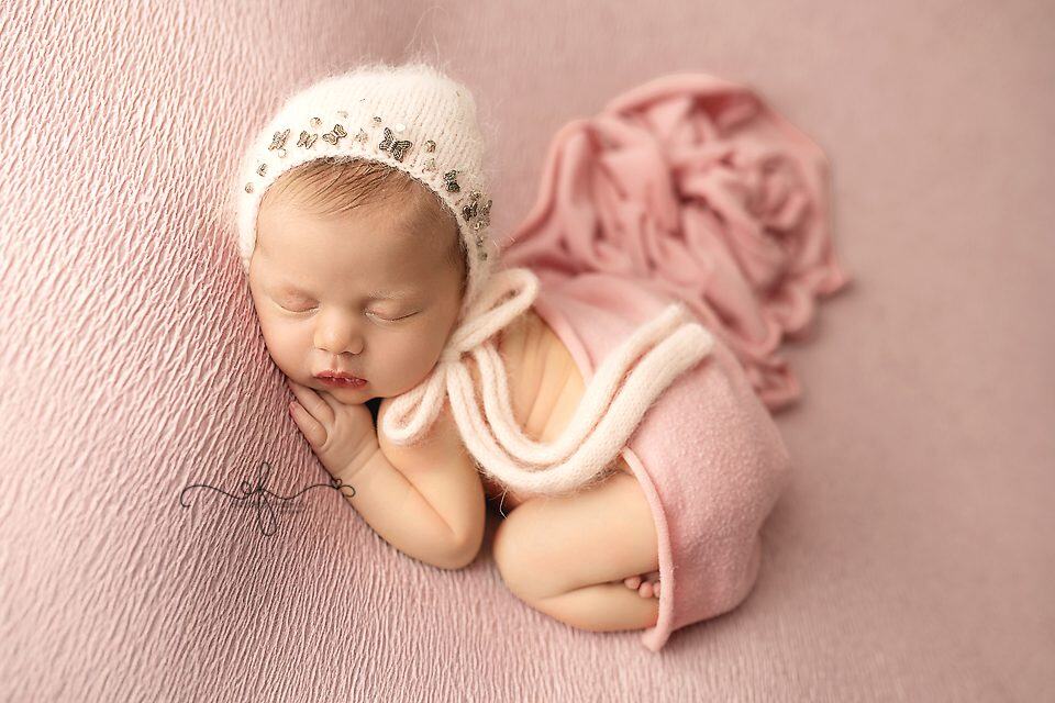 While Mom was excited to go completely all girl this time with soft pinks, whites, and dainty tulle. She also wanted to keep one important element familiar. Both big brothers have newborn portraits hanging on the walls at home featuring a bear theme, and it was important to her that their baby sister have an image that could hang right alongside theirs.