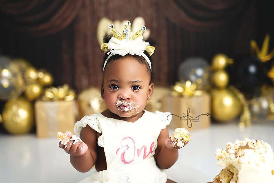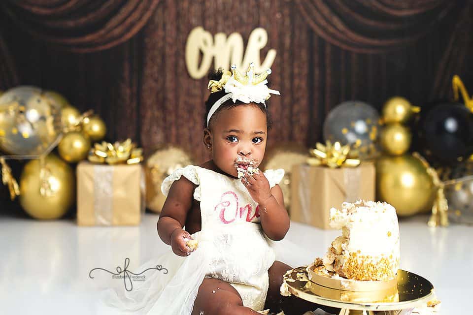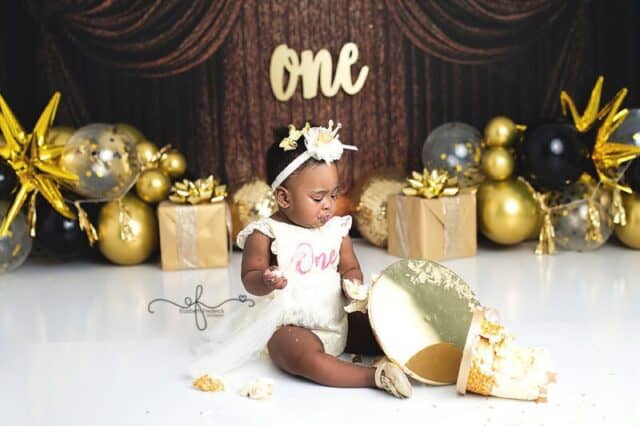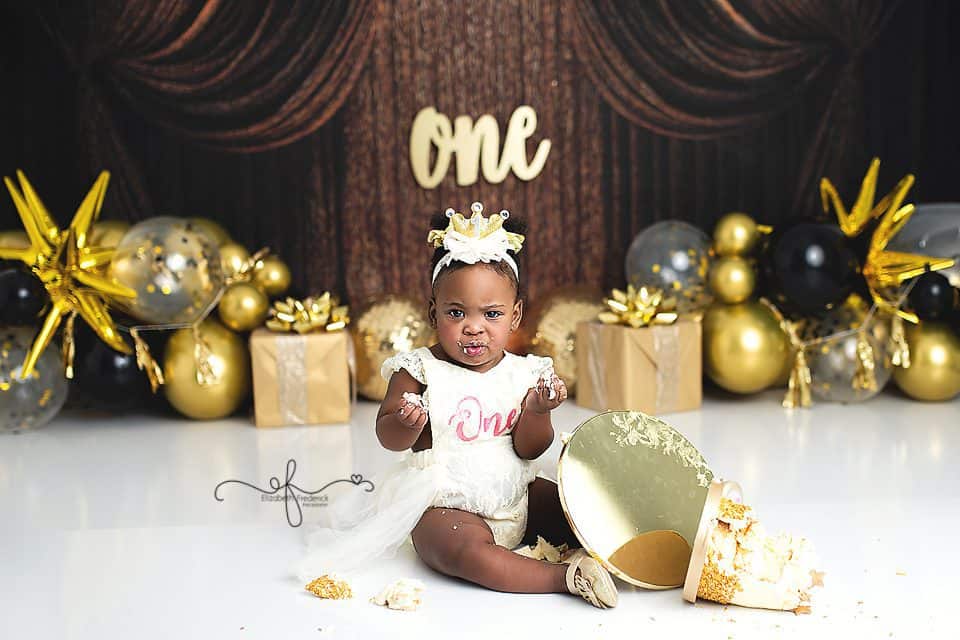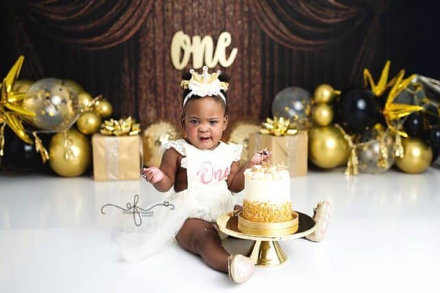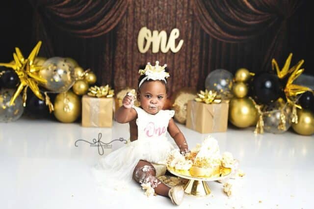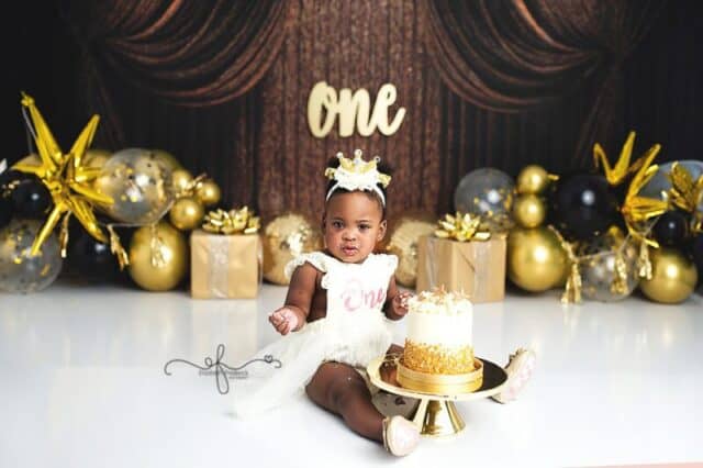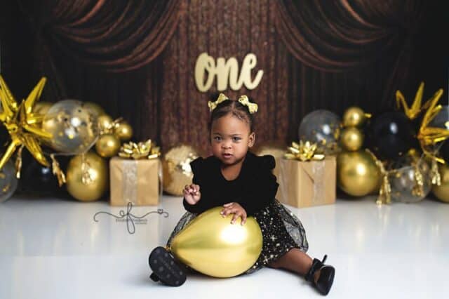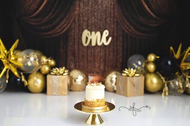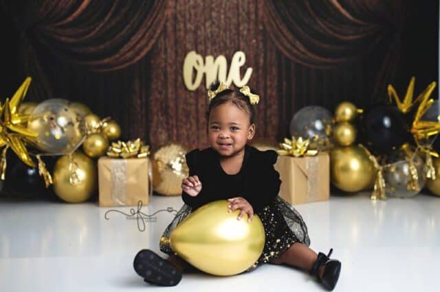 There’s something extra special about a New Year’s Day baby — a fresh start, a new chapter, and in this case, the sweetest first birthday celebration. This gold and black New Year’s–themed smash cake session was the perfect way to ring in ONE, and it was an absolute joy to photograph from start to finish.