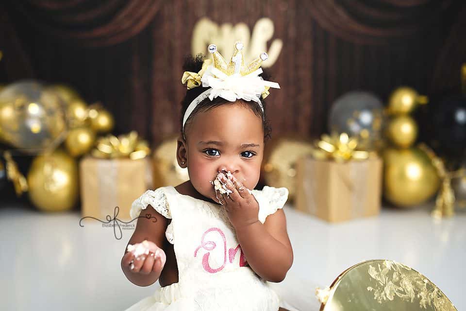 The gold and black backdrop added a timeless New Year’s feel while keeping the focus exactly where it belongs — on this milestone moment. Smash cake sessions aren’t just about the cake; they’re about preserving the tiny details, expressions, and personalities that parents never want to forget.